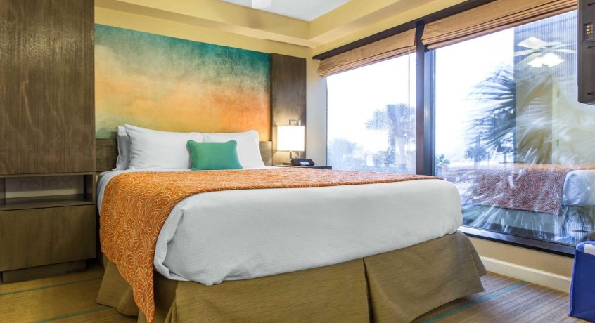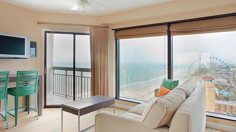 Bluegreen SeaGlass Tower is Nineteen stories of suites featuring floor-to-ceiling windows ensure stunning views of the ocean and Grand Strand. One-bedroom standard and deluxe suites provide a comfortable seaside stay, with full kitchens and baths, separate living and dining areas, and cozy balconies. Enjoy a dip in the resort’s indoor pool, or relax in the hot tub overlooking the beach. The resort is conveniently located minutes from popular oceanfront attractions along the Myrtle Beach boardwalk promenade, such as Broadway at the Beach, Myrtle Waves Water Park, and the famous Myrtle Beach SkyWheel and much more.