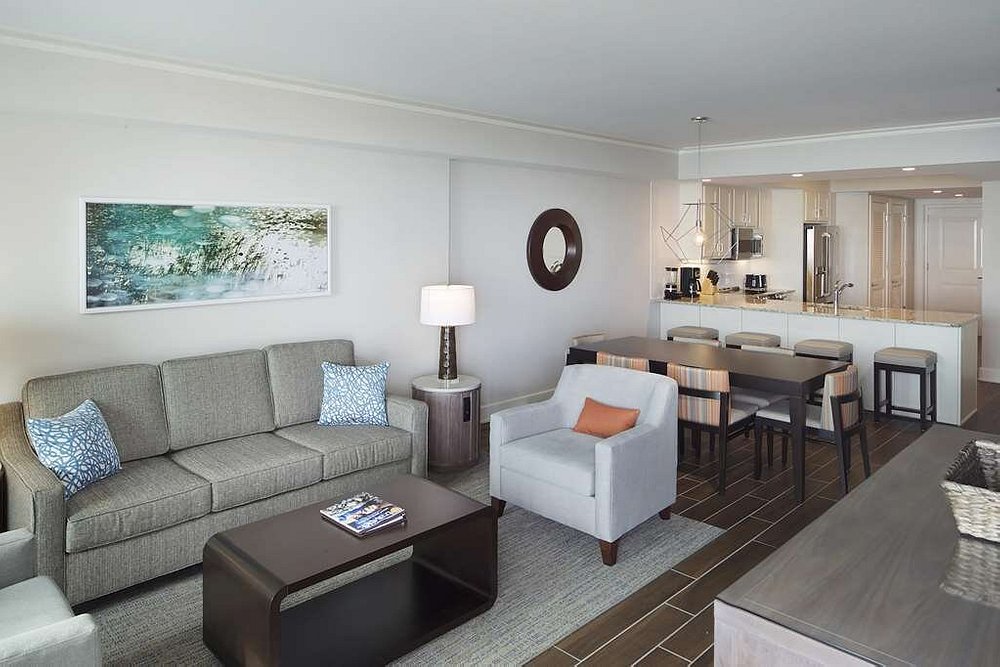 Set along the breezy coastline of Hilton Head Island, SC, the Ocean Oak Resort by Hilton Grand Vacations offers a peaceful retreat in a park-like setting with all the comforts of home. This new resort is less than a mile from the oceanside paths and activities at Coligny Beach Park, just a 10-minute drive to South Beach and Harbour Town, and a quick ride to the vacation conveniences along Palmetto Bay Road/Highway 278. Enjoy easy access to 250 Hilton Head restaurants and 20 golf courses during your stay. Every unit at our all-suite resort has 2 bedrooms, a full kitchen with stainless steel appliances, a dining area, living space, washer/dryer, and 2 bathrooms. Relax watching a movie on the DVD player and take in the view from your private balcony. Grab a cocktail from the pool bar and wade into the zero-entry pool with spray features. Relax on the sun shelf and enjoy the ocean breeze, then head for the lap pool for a swim. Want some exercise?